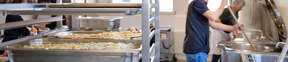 Jeden Donnerstag bereitet unser Kochteam ein leckeres Mittagessen mit reichhaltigem Salat, einfacher Hauptspeise und kleinem Dessert zum Preis von CHF 5.– zu. Die Menüs sind ausgewogen, schmackhaft und abwechslungsreich.